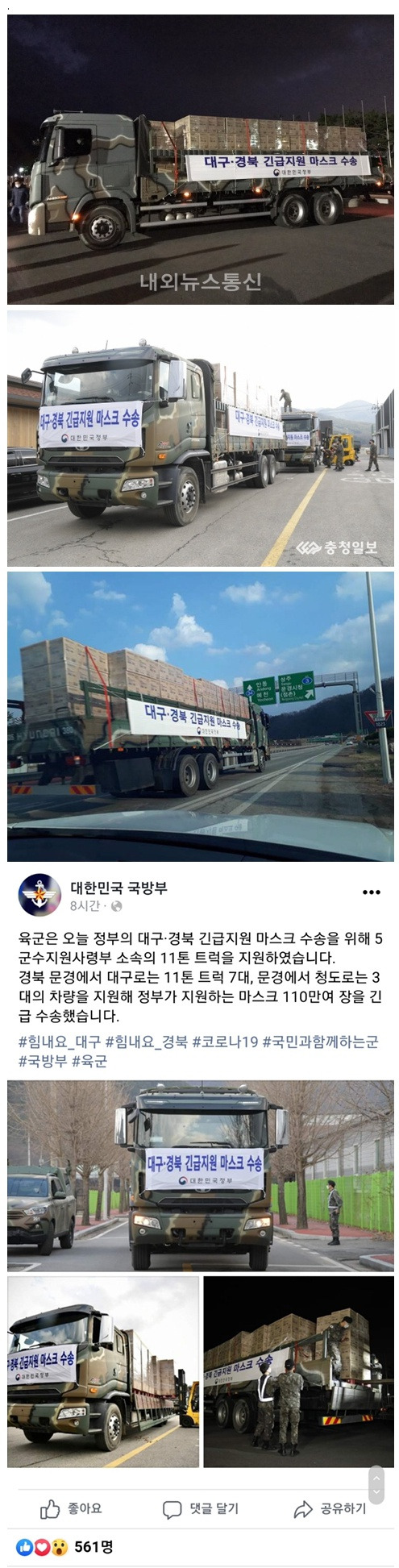 대구 경북으로 긴급 수송되는 마스크