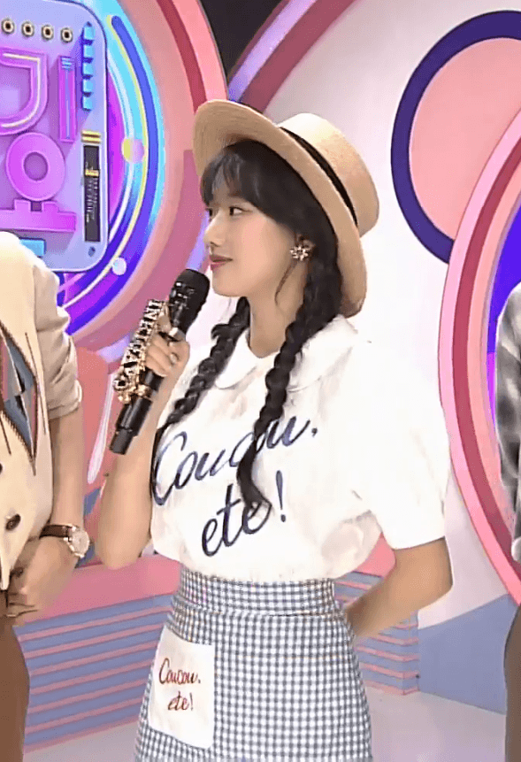 오늘자 SBS 인기가요 MC 에이프릴 나은 봄소풍 st.의상 (GIF)