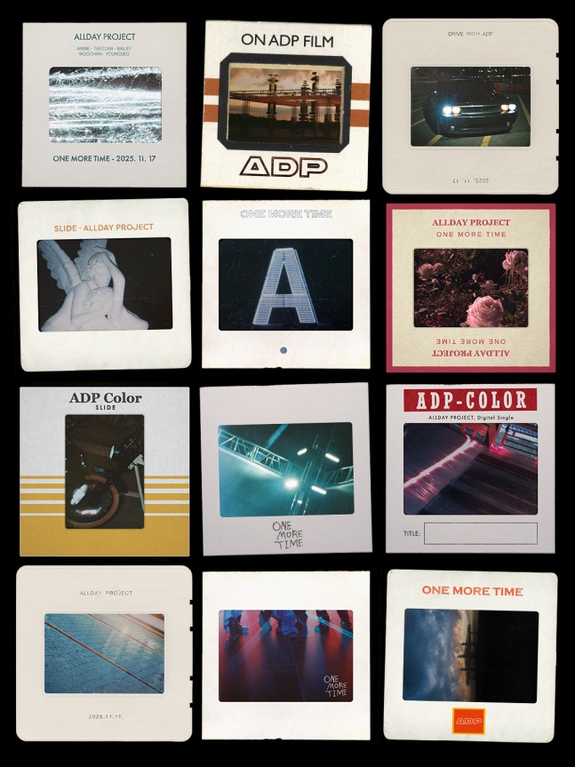 더블랙레이블은 9일 공식 SNS를 통해 그룹 ALLDAY PROJECT 새 디지털 싱글 ‘ONE MORE TIME’(원모어타임)의 티징 콘텐츠를 공개했다. 공개된 콘텐츠는 슬라이드 필름 형식으로 신곡 ‘ONE MORE TIME’과 관련한 여러 이미지를 보여주고 있다. 디지털 싱글 ‘ONE MORE TIME’은 11월 17일 오후 6시 발표되며, 12월에는 데뷔 첫 EP가 발매된다.