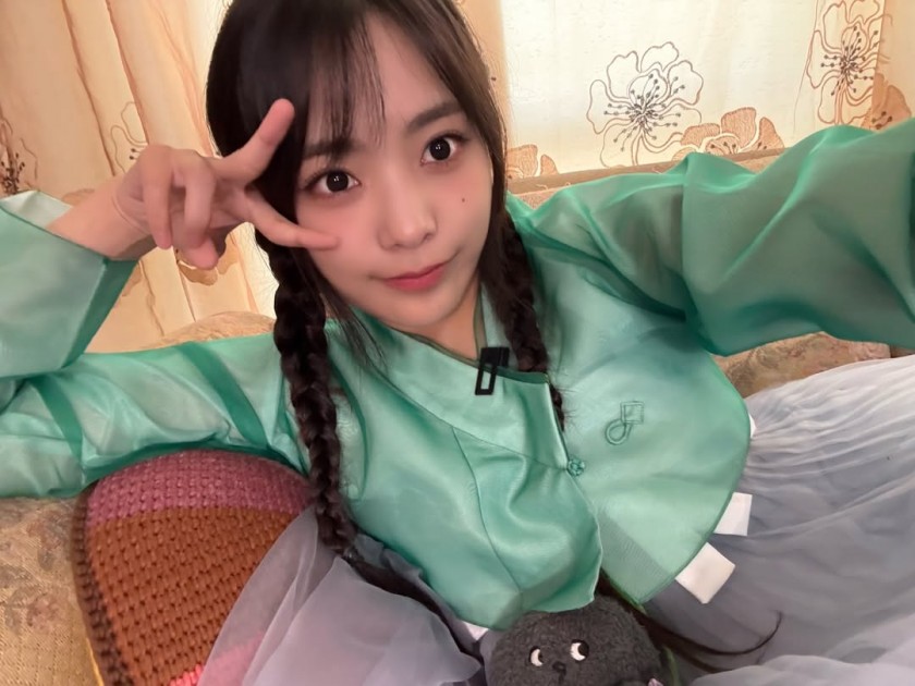 한복입고 재롱부리는 르세라핌 김채원