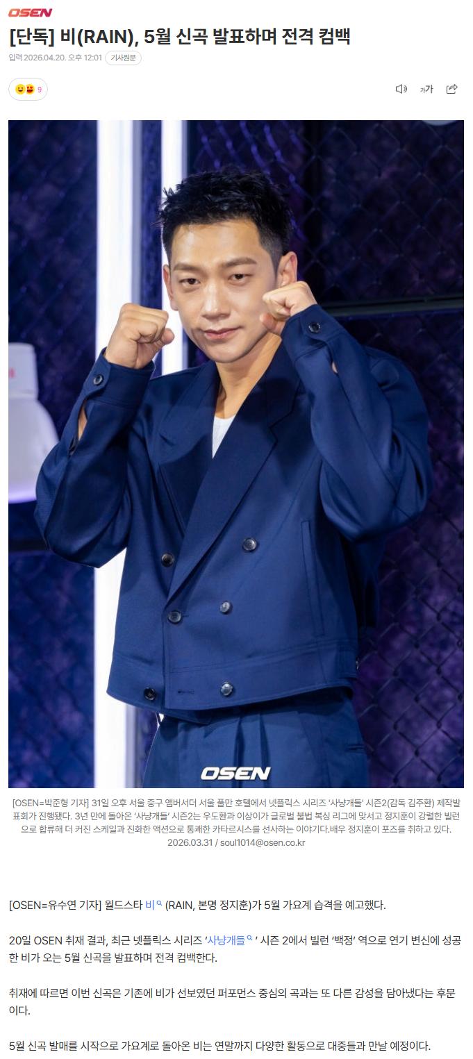 넷플 '사냥개들2' 하드캐리한 비(정지훈) 근황