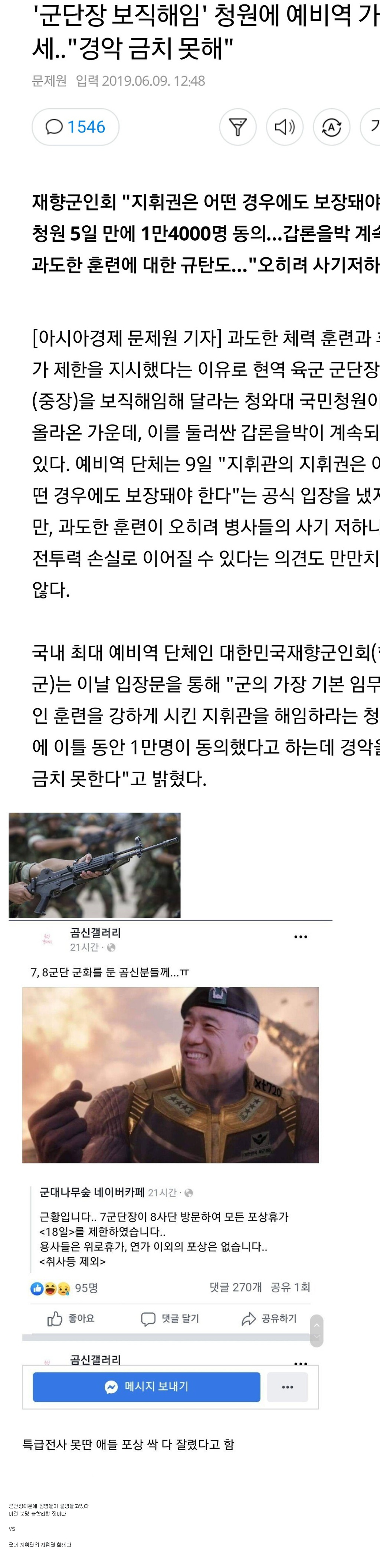 군단장때문에 장병들이 골병들고있다