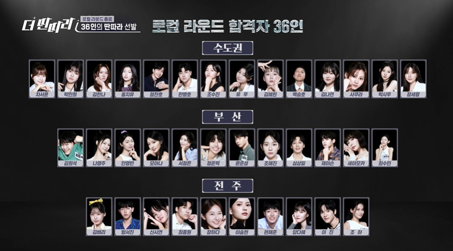 첫 라운드 합격자 36인 중 절반 이상이 여자인 더딴따라