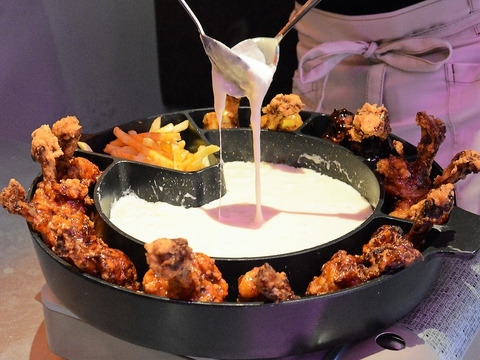 치킨을 녹인 치즈에 찍어먹는다는데